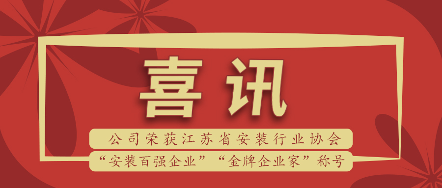 喜訊 | 公司榮獲江蘇省安裝行業(yè)“安裝百?gòu)?qiáng)企業(yè)”及“金牌企業(yè)家”稱號(hào)