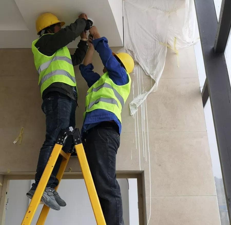 工人在安裝監(jiān)控設(shè)備